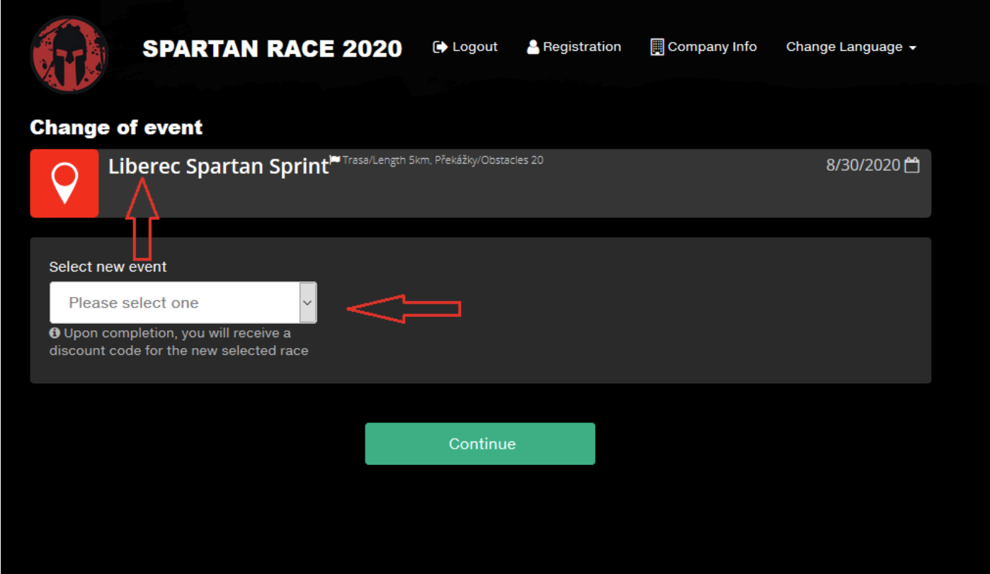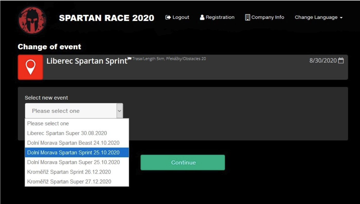 If you want to switch to a different race within the same country, the first step will be to log into your profile at http://spartanrace.onlinesystem.cz.