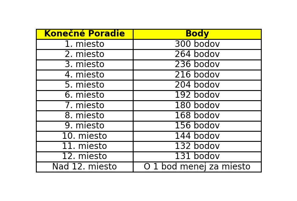 *Bez ohľadu na celkový počet podujatí sa do vašich celkových bodov budú počítať len vaše 2 alebo 3 najlepšie výsledky. Ak sa zúčastníte na viac ako 2 alebo 3 pretekoch, budú sa brať do úvahy len vaše 2 alebo 3 najlepšie výsledky a za ďalšie preteky nebudú udelené žiadne ďalšie body.